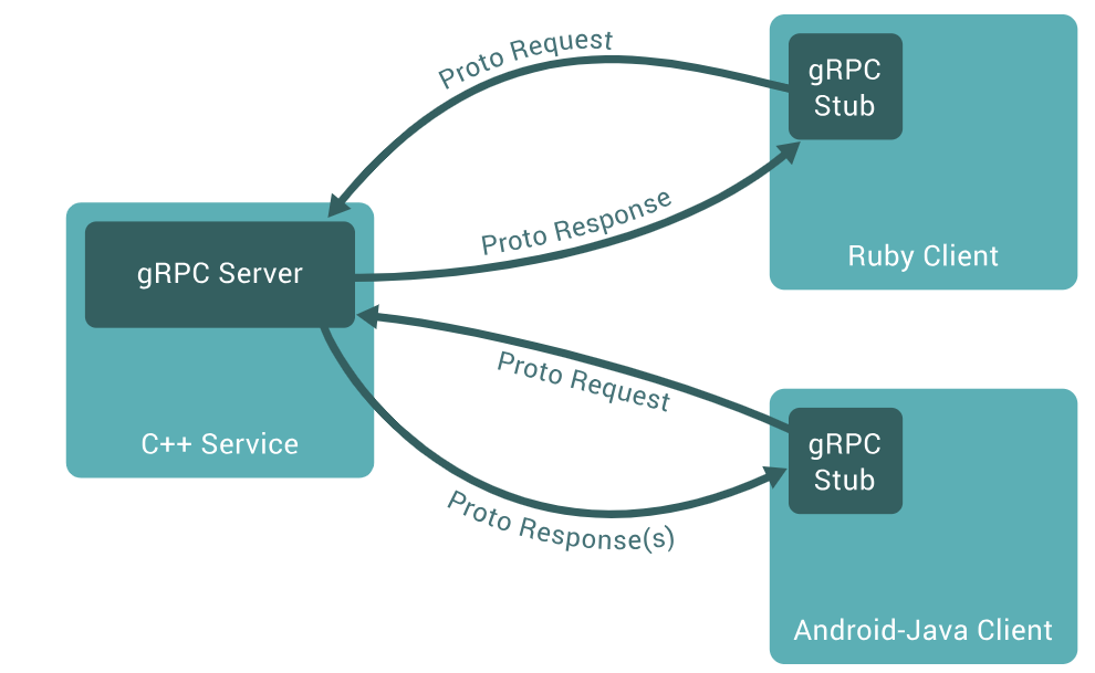 gRPC의 request와 response는 gRPC서버와 gRPC클라이언트 사이를 오갑니다.